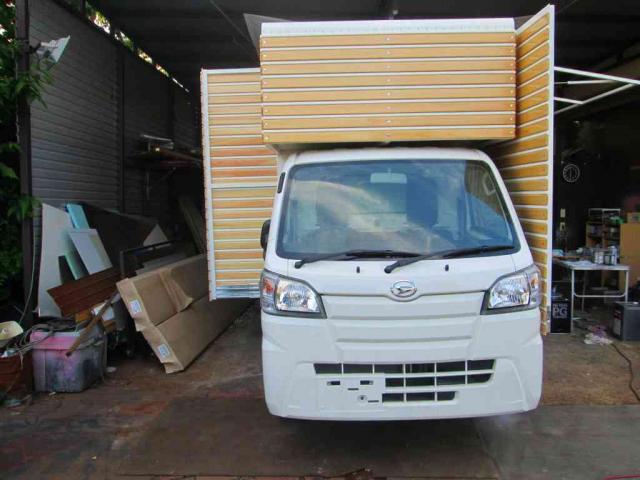 ただ今、グーネット等でご案内しておりますスズキキャリィベース、両側スライド仕様は売約済みとなってしまいましたが大変たくさんのお問合せをいただきありがとうございました。現在ダイハツハイゼットベースで製作途中の車もすでに売約済みとなってしまいました。